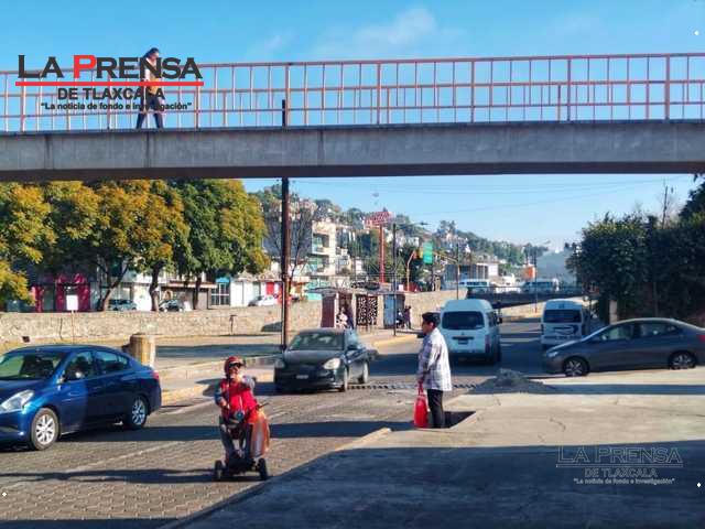 Tlaxcala, Tlax, 23 de enero de 2025. Pese a existir diversos puentes peatonales en zonas claves de la ciudad, son pocas las personas que hacen uso de ellos, pues prefieren cruzar por debajo de ellos, aunque eso implique un riesgo, ya que muchas veces deben cruzar corriendo para ganarle a los automovilistas.