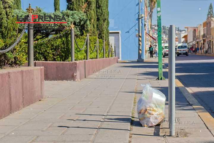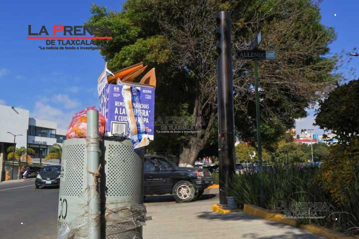 Tlaxcala, Tlax, 08 de enero de 2025. En diferentes puntos de la capital tlaxcalteca, hace algunos meses fueron colocados contenedores de basura, sin embargo, muchos de ellos desaparecieron al poco tiempo, ocasionando que las personas saturen de desechos los pocos que aún quedan o bien que dejen bolsas de basura en las estructuras. Cabe mencionar, que se desconoce la razón de su desaparición o el retiro de los botes de basura.