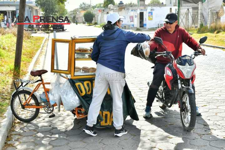 Veronica Carvente, de 47 años, diariamente vende sus productos consistentes en donas de diferentes sabores en la zona de los lavaderos de la Cuarta Sección de Zacatelco. Ahí, Veronica ofrece su delicioso producto a peatones y conductores que circulan por la zona. Veronica diariamente trabaja desde temprana hora para tener listos sus panecillos y así obtener ingresos.