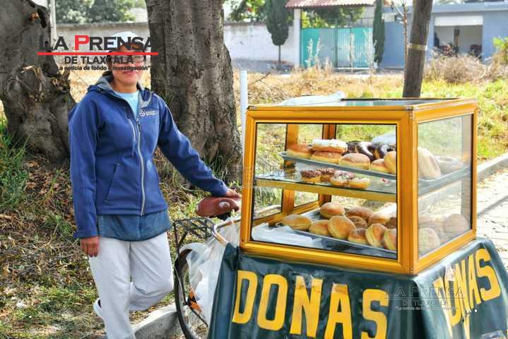 Veronica Carvente, de 47 años, diariamente vende sus productos consistentes en donas de diferentes sabores en la zona de los lavaderos de la Cuarta Sección de Zacatelco. Ahí, Veronica ofrece su delicioso producto a peatones y conductores que circulan por la zona. Veronica diariamente trabaja desde temprana hora para tener listos sus panecillos y así obtener ingresos.