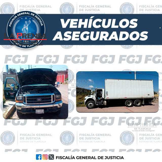 Elementos de la Policía de Investigación adscritos a la Fiscalía General de Justicia del Estado (FGJE) aseguraron un camión marca Freightliner, color blanco, así como una camioneta marca Ford que se encontraban abandonados y que cuentan con reporte de robo.