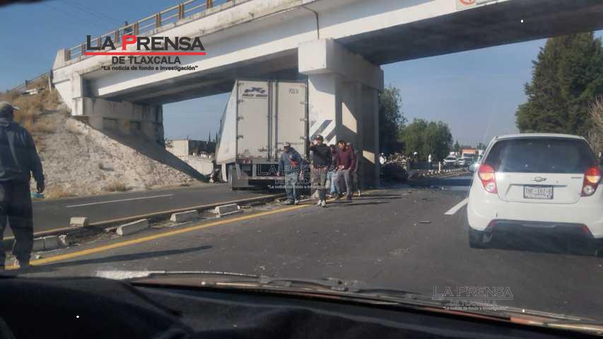 Esta mañana los carriles que dirigen hacia Tlaxcala de la autopista Texmelucan-Tlaxcala, permanecen cerrados debido al choque de un tráiler en la zona.