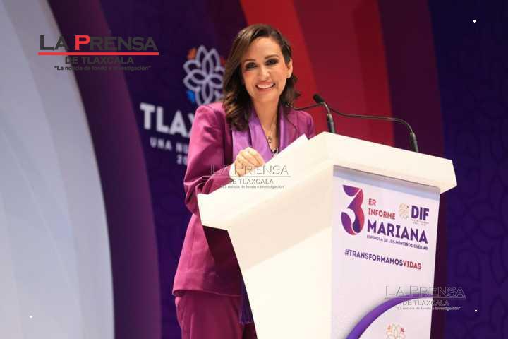 En el marco del Tercer Informe de Actividades del SEDIF, realizado en el Centro Cultural Universitario de Tlaxcala, la mandataria estatal agradeció a María del Rocío García Pérez, titular del Sistema Nacional DIF, por su acompañamiento, y al Gobierno de México, que encabeza la presidenta Claudia Sheinbaum Pardo, por todo el respaldo que Tlaxcala ha recibido a favor del bienestar de las familias de la entidad.