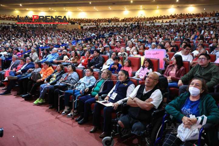 En el marco del Tercer Informe de Actividades del SEDIF, realizado en el Centro Cultural Universitario de Tlaxcala, la mandataria estatal agradeció a María del Rocío García Pérez, titular del Sistema Nacional DIF, por su acompañamiento, y al Gobierno de México, que encabeza la presidenta Claudia Sheinbaum Pardo, por todo el respaldo que Tlaxcala ha recibido a favor del bienestar de las familias de la entidad.