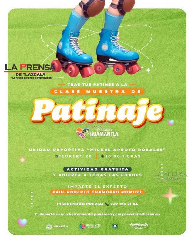 A fin de fomentar acciones que alejen a la juventud de las adicciones, el Gobierno Municipal de Huamantla, a través de la Coordinación de Deporte, invita a participar en la Clase Muestra de Patines, que se llevará a cabo el viernes 28 de febrero a las 10:00 horas, en la Unidad Deportiva “Miguel Arroyo Rosales”.