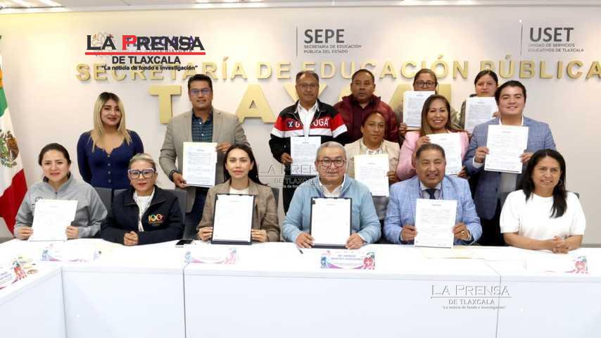 Con el propósito de robustecer la prestación de los servicios educativos, el titular de la Secretaria de Educación Pública del Estado y de la Unidad de Servicios Educativos del Estado de Tlaxcala (SEPE-USET), Homero Meneses Hernández, encabezó la firma de un convenio de colaboración con 12 municipios, que aplicará en los ciclos escolares 2024-2025 y 2025-2026.