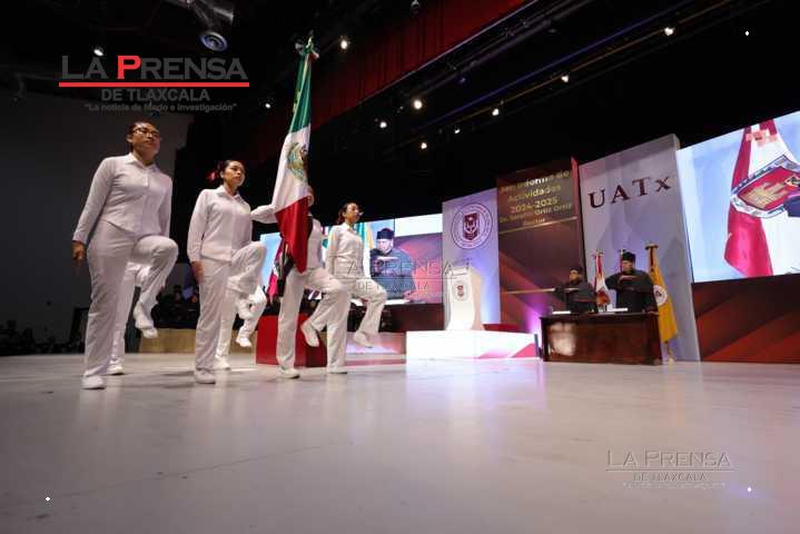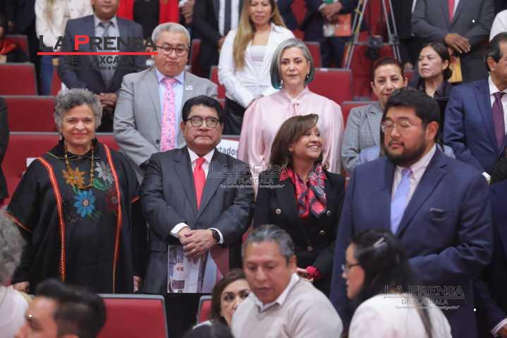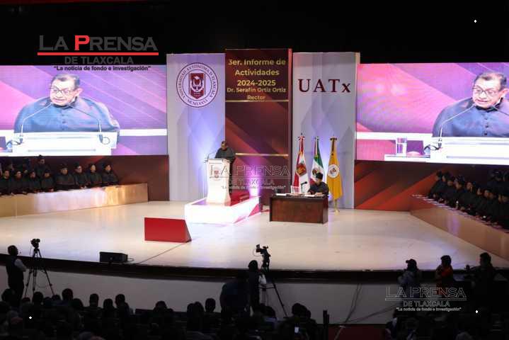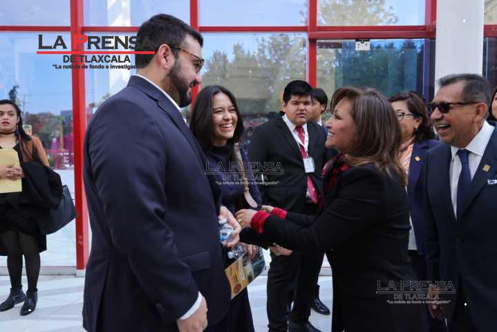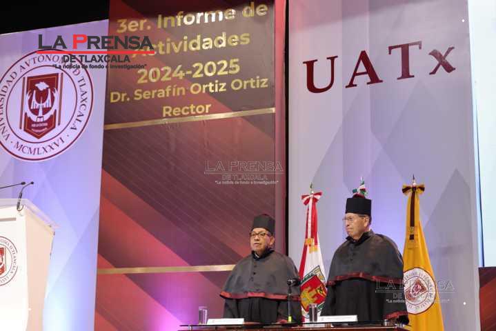 La gobernadora Lorena Cuéllar Cisneros asistió al tercer informe de actividades 2024-2025 del rector de la Universidad Autónoma de Tlaxcala (UATx), Serafín Ortiz Ortiz.