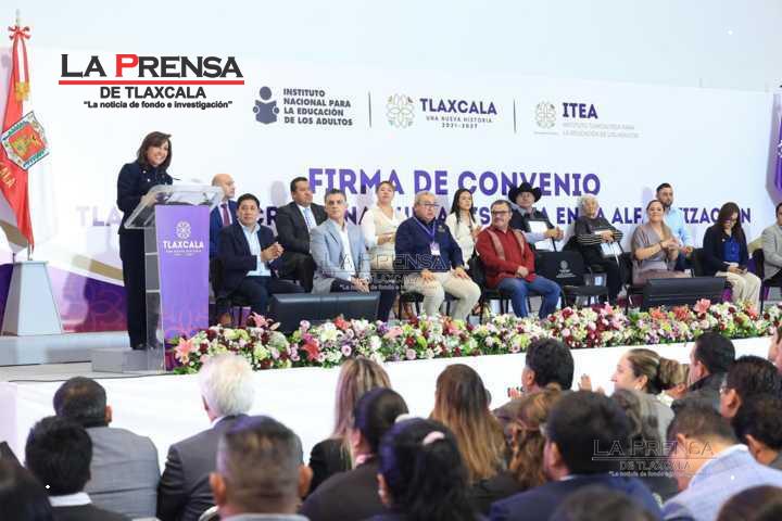 La gobernadora Lorena Cuéllar Cisneros firmó un convenio de colaboración con el Instituto Nacional para la Educación de los Adultos (INEA), denominado “Tlaxcala escribe una Nueva Historia en la Alfabetización”, con el objetivo de alcanzar el distintivo de Bandera Blanca en este rubro.