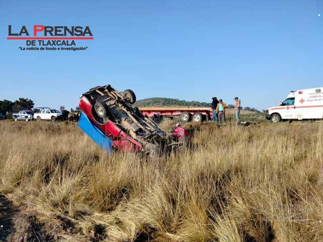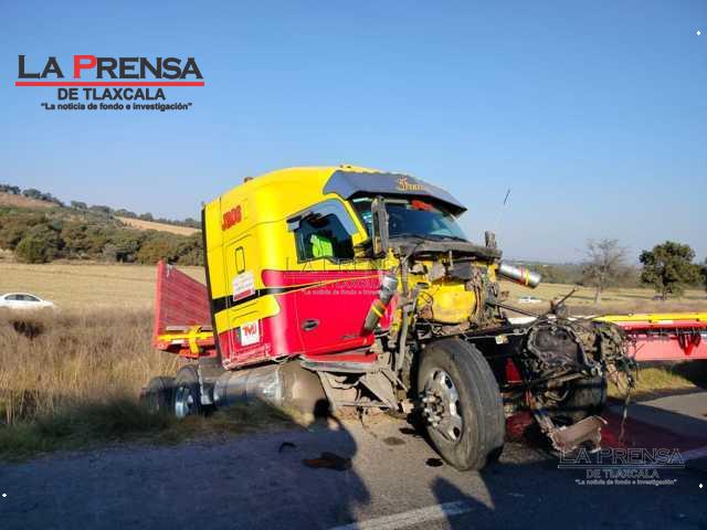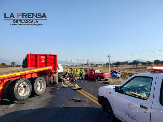 Esta mañana sobre la carretera federal Apizaco-Tlaxco, a la altura de Atlangatepec, un tráiler colisiona a dos particulares con saldo de un fallecido, tres heridos y daños materiales considerables.