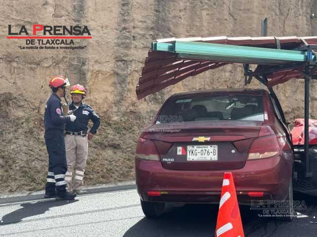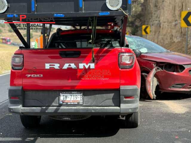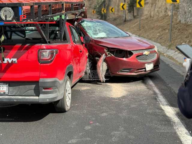 Colisión entre una camioneta y un automóvil en el km 67 de la México-Veracruz, en la curva de San José, Calpulalpan, Tlaxcala.