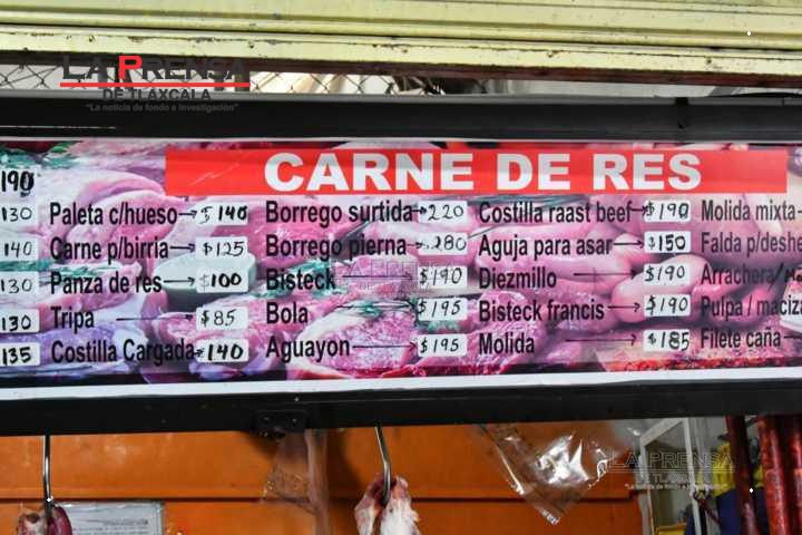 Durante un recorrido realizado este domingo en las carnicerías ubicadas en el mercado Emilio Sánchez Piedras de la ciudad de Tlaxcala, se pudo constatar un aumento del 20 porciento en la carne de res y del 50 porciento en la carne de cerdo esto debido a diversos factores, como el aumento en los costos de alimentos para engorda de los animales, además de escases de granos, alimentos y de las propias reses y cerdos. Aunado a los trámites y servicios como licencias de funcionamiento o pagos de luz y trabajadores y, el aumento descontrolado en la gasolina y los asaltos en carreteras. Además la industria de los derivados de la res, ha ido disminuyendo, ya que la piel de res se ha dejado de trasladar a León, Guanajuato para su utilización para elaborar zapatos, esto debido a la creciente introducción de productos chinos al país, entre otros productos. Finalmente, el costo de la carne de res aumento de 170 a 190 pesos en las últimas semanas.