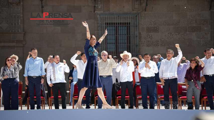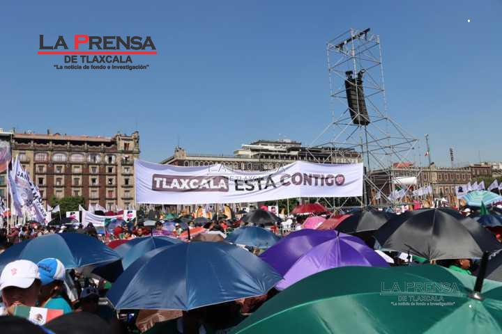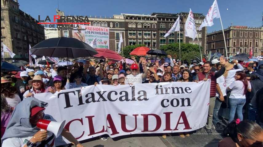 En el zócalo de la Ciudad de México, la gobernadora señaló que el pueblo del estado expresaba su apoyo a la mandataria federal. ¡Tlaxcala con Claudia Sheinbaum!