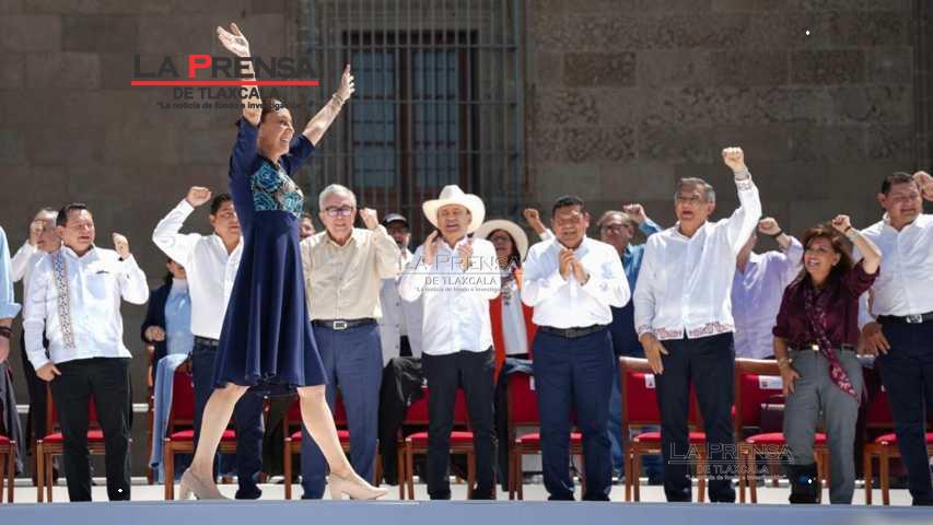 En el zócalo de la Ciudad de México, la gobernadora señaló que el pueblo del estado expresaba su apoyo a la mandataria federal. ¡Tlaxcala con Claudia Sheinbaum!
