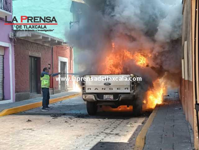 La Coordinación de Protección Civil Municipal de Tlaxcala atendió de forma oportuna el incendio de una camioneta que se encontraba estacionada sobre la calle Zitlalpopócatl, en la capital del estado.