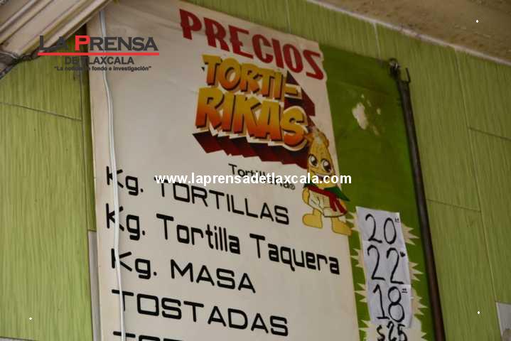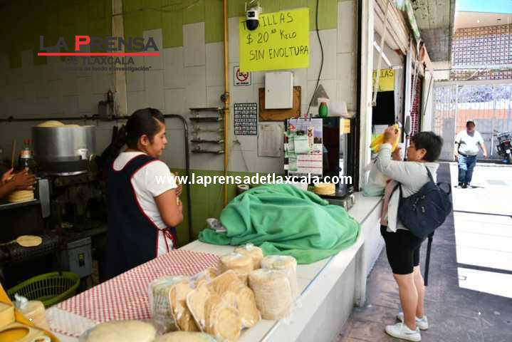 Desde esta mañana, locatarios del mercado Emilio Sánchez Piedras de la ciudad de Tlaxcala, aumentaron en 2 pesos el costo por kilo de la tortilla de máquina, ya que pasó de 18 a 20 pesos. Cabe señalar que los locatarios mantuvieron el precio de 18 pesos por kilo, durante 5 años, pero debido al aumento en luz y gas, entre otros factores, se vieron obligados a realizar esta acción.