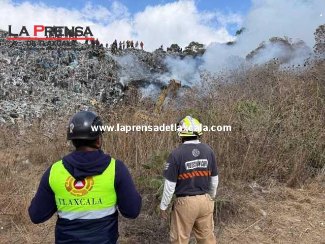 Esta mañana de lunes se reportó un incendio en el relleno sanitario de la comunidad de Techachalco. Equipos de emergencia y Protección Civil acudieron al lugar y lograron controlar el fuego.