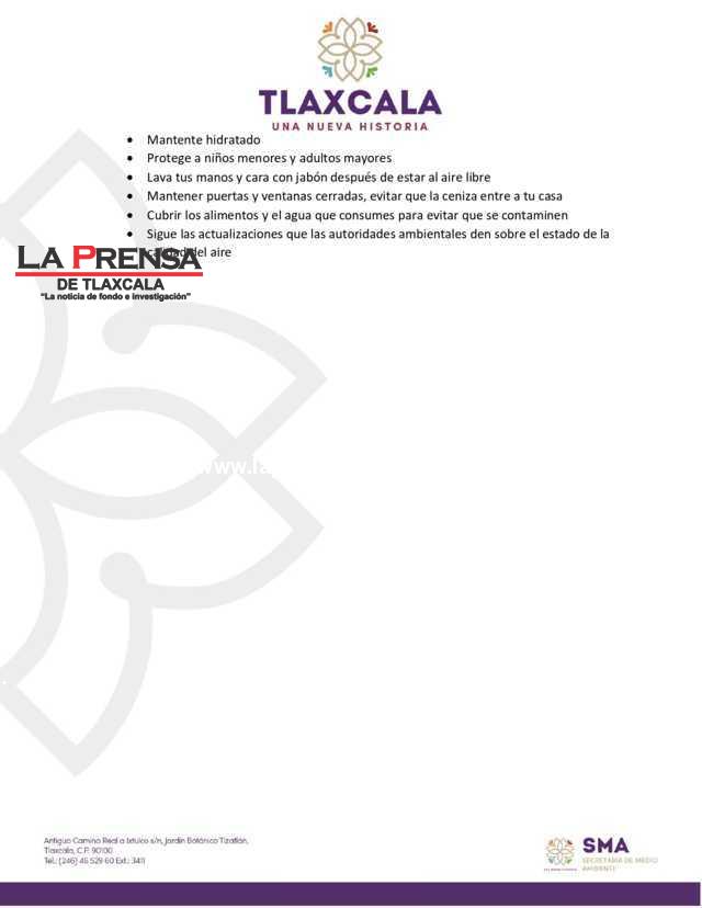 De acuerdo a lo anteriormente señalado; se suspenden todas las actividades, eventos, concentraciones y espectáculos masivos en los municipios afectados de manera indefinida hasta una nueva publicación, asimismo, permanecerá cerrado el Parque Nacional Malinche hasta nuevo aviso.