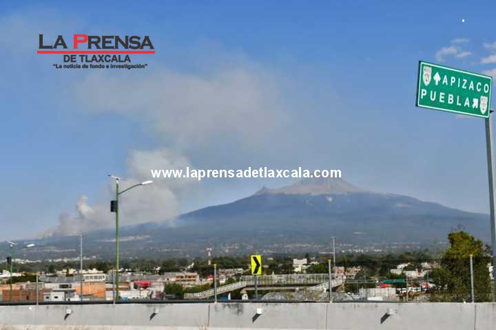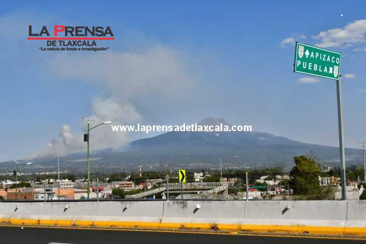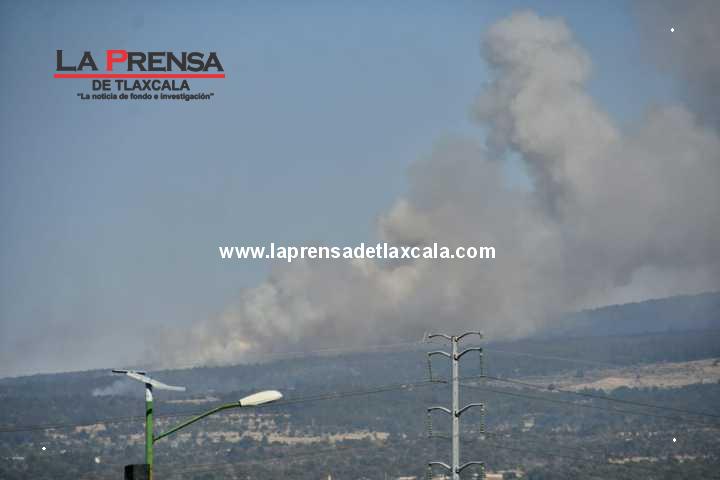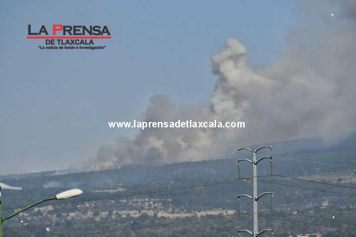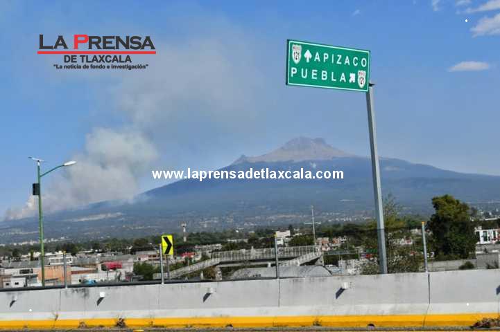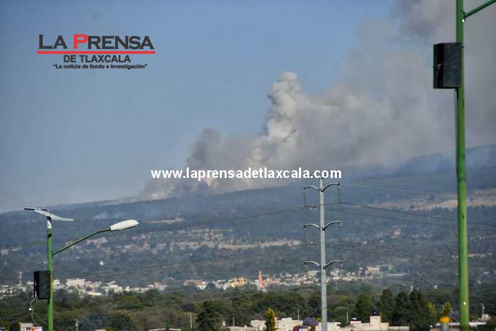 Desde la zona del periférico de Tlaxcala específicamente en territorio de Santa Ana Chiautempan, así se logra apreciar un mega incendio en la zona de La Malinche el cual desprende una densa columna de humo.