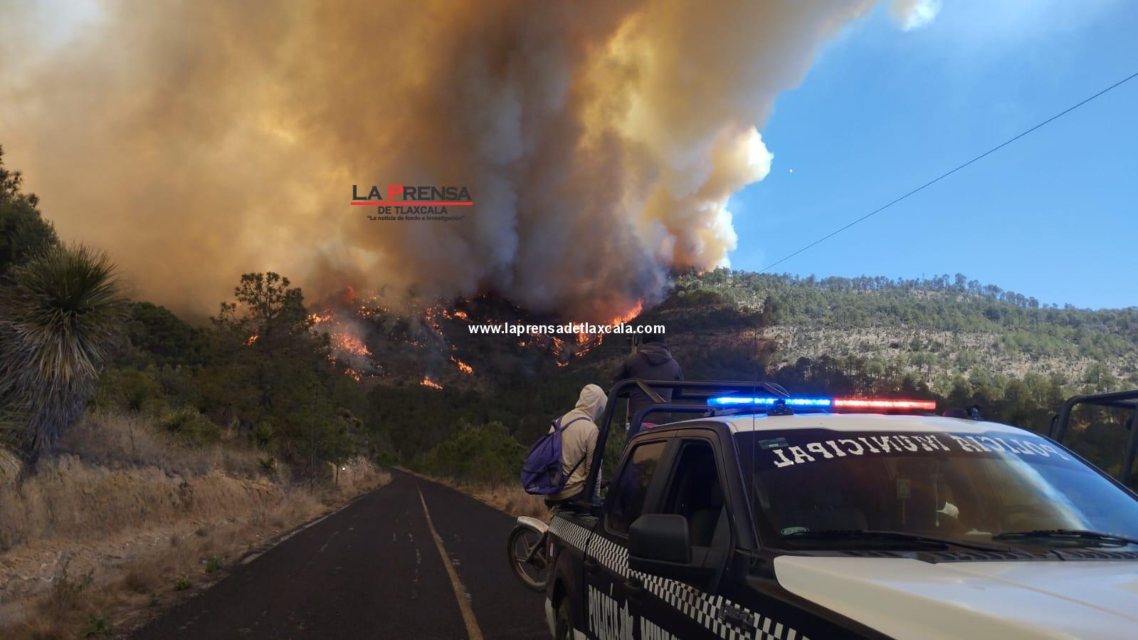 #IncendioForestal en #Libres, #Puebla, cruza a #Atzayanca, #Tlaxcala. Equipos de SEMAR_mx, Defensamx1, CONAFOR, AmbienteGobPue, bomberos, voluntarios y PC Municipal trabajan sin descanso por aire y tierra para controlarlo.