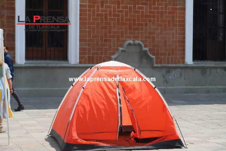 Luego de manifestarse sin éxito a las afueras del Congreso del Estado, trabajadores y extrabajadores del Instituto Tecnológico de Tlaxco se instalaron esta mañana frente a Palacio de Gobierno para iniciar una huelga de hambre.
