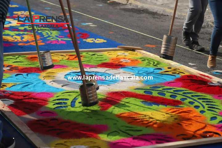 Esta tarde, las principales calles de la ciudad de Chiautempan se visten de color y devoción, mientras vecinos se reúnen para realizar las tradicionales alfombras de aserrín, en preparación para la solemne Procesión de padre jesús del convento y la virgen dolorosa