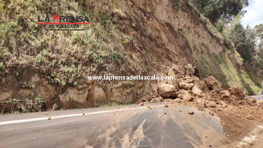 Se reporta un derrumbe en la autopista Tlaxcala-Apizaco, a la altura de Ocotelulco, municipio de Totolac, obstruyendo el carril de baja en dirección a la ciudad rielera (Apizaco).