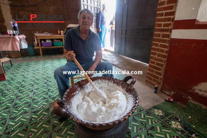 Mota asegura que la elaboración del dulce sigue siendo artesanal. “Usamos cazuelas de barro y el batido se hace a mano. Hay que cuidar los tiempos, no es algo que se haga rápido.” El proceso requiere precisión, especialmente en la incorporación del pulque, que debe añadirse en el momento justo.