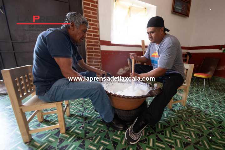 Mota asegura que la elaboración del dulce sigue siendo artesanal. “Usamos cazuelas de barro y el batido se hace a mano. Hay que cuidar los tiempos, no es algo que se haga rápido.” El proceso requiere precisión, especialmente en la incorporación del pulque, que debe añadirse en el momento justo.
