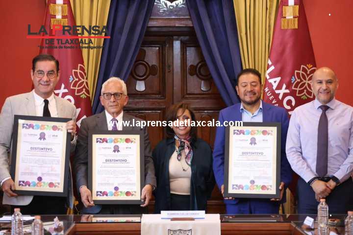 La gobernadora Lorena Cuéllar Cisneros entregó el distintivo “Empresa que Impulsa el Trabajo Digno 2025” a dos empresas y una institución académica, la primera en recibirlo; este reconocimiento que contribuye a dignificar las condiciones laborales en Tlaxcala.