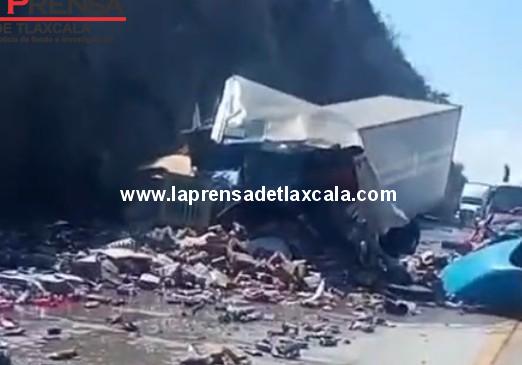 El incidente, registrado en territorio tlaxcalteca, provocó el cierre total de la circulación en ambos sentidos, afectando las rutas hacia San Martín Texmelucan y Calpulalpan. La colisión causó que mercancía de los vehículos pesados quedara esparcida sobre la carretera, intensificando el caos vial en la zona.