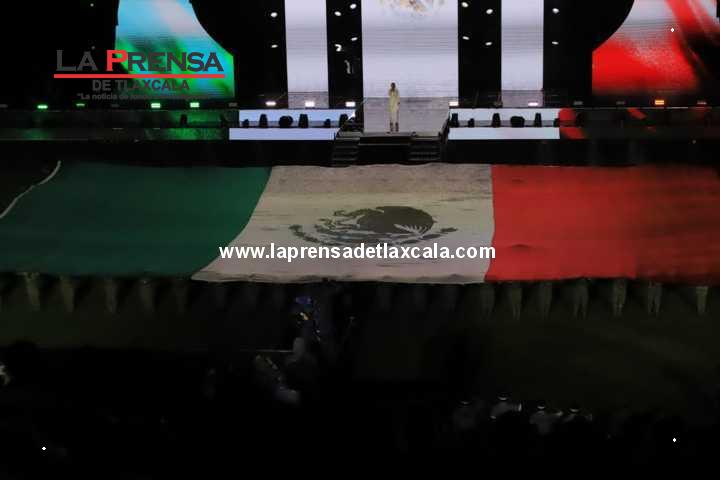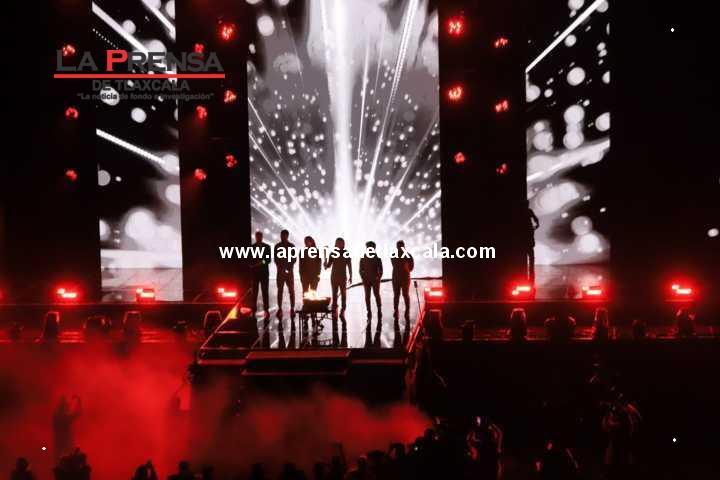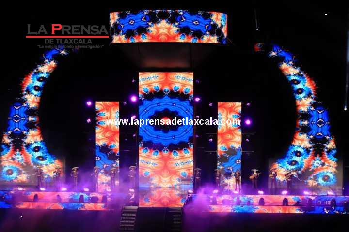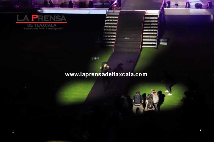 El estadio se llenó de luz y energía, mientras que el cielo tlaxcalteca se iluminó con un espectáculo de drones que formaron letras y figuras, dejando maravillados a los asistentes.