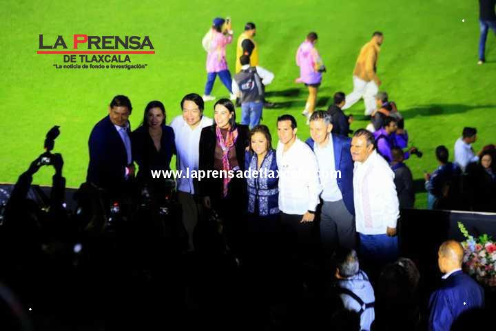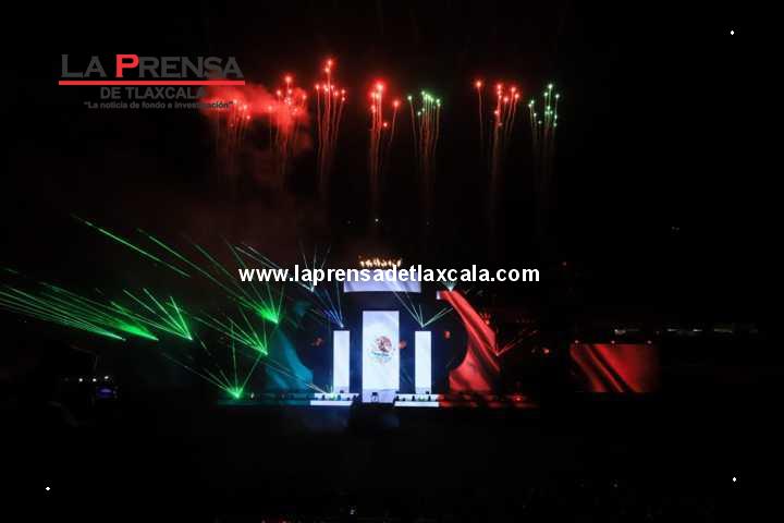 El estadio se llenó de luz y energía, mientras que el cielo tlaxcalteca se iluminó con un espectáculo de drones que formaron letras y figuras, dejando maravillados a los asistentes.
