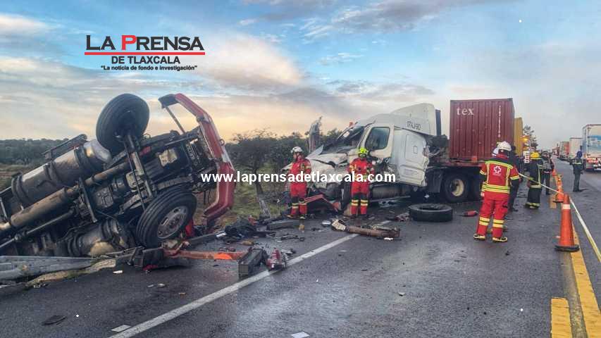 Un fatal accidente ocurrió la madrugada de este miércoles en la autopista Amozoc-Perote, kilómetro 48+500, entre los municipios de Atltzayanca y Cuapiaxtla, Tlaxcala. Alrededor de las 03:30 horas, un camión tipo tortón, cargado con plátanos, colisionó de frente contra un tráiler con dos semi contenedores tras intentar un rebase en el carril contrario. El impacto fue tan severo que el conductor del tortón perdió la vida al instante.