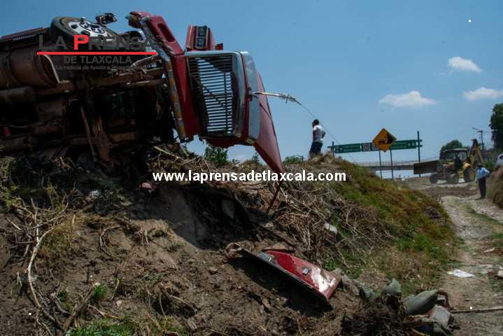 Cerca de las 13:00 horas de este viernes, un camión cargado con tierra, volcó sobre la autopista Apizaco-Tlaxcala, a la altura de Tizatlán, dejando únicamente daños materiales y afectaciones a la vialidad. En el lugar el camión quedó volcado sobre su costado izquierdo, mientras que una máquina ayudó a retirar la carga.