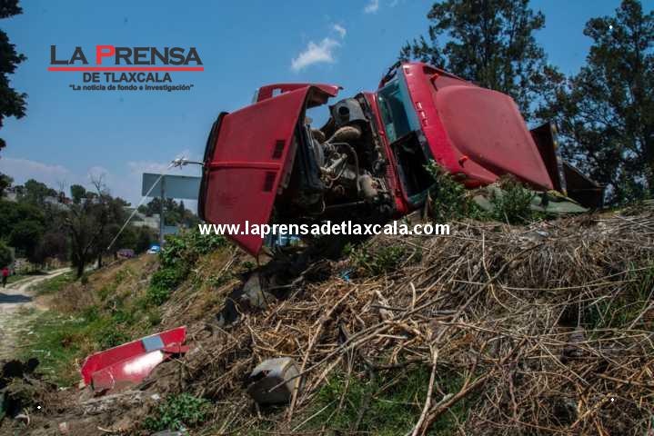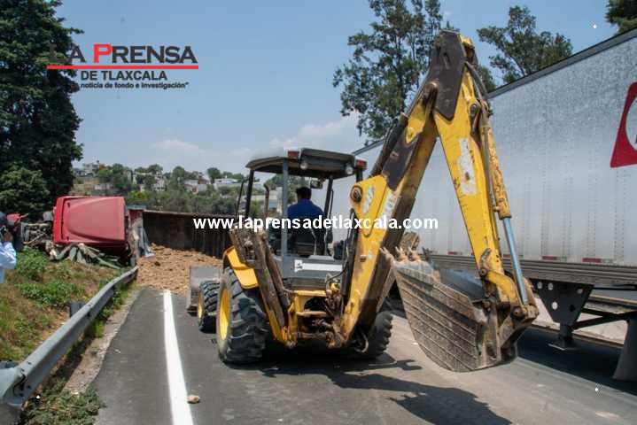 Vuelca camión cargado con tierra en la autopista Apizaco-Tlaxcala, zona Tizatlán