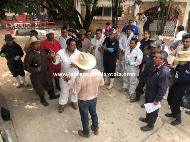 La actividad se desarrolló en una unidad de producción pecuaria de ganado bovino de engorda ubicada en la comunidad de Texcalac, municipio de Apizaco, con la participación de 80 profesionales en sanidad animal de la SADER, organismos auxiliares y autoridades gubernamentales de los estados de Morelos, Veracruz, Guerrero, Puebla, Hidalgo, Estado de México y Tlaxcala.