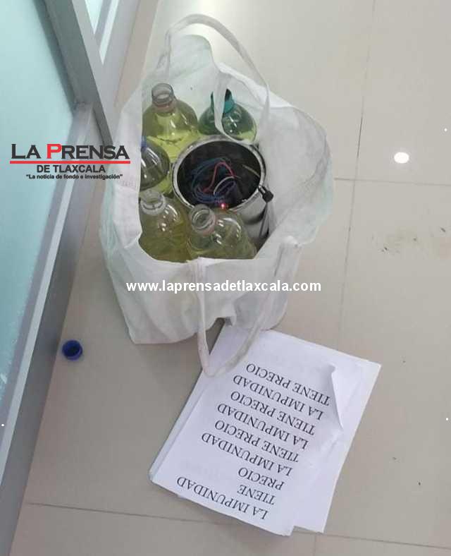 Hueyotlipan, Tlaxcala, 11 de junio de 2025.- Esta mañana, a las 09:11 horas, autoridades locales activaron un protocolo de seguridad en la UPT Región Poniente, ubicada en San Diego Recova, Hueyotlipan, tras el reporte de un objeto sospechoso. Se trata de varias botellas de vidrio con un dispositivo en su interior, abandonada por un individuo vestido de negro con cabello largo, según testigos.