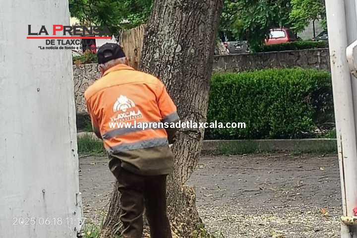 Para salvaguardar la integridad de la ciudadanía, el Ayuntamiento de Tlaxcala, a través de la Dirección de Servicios Públicos y del Departamento de Ecología, con apoyo de otras áreas, llevó a cabo el retiro de un árbol que representaba un riesgo latente en una importante vialidad donde se encuentra un plantel educativo y un espacio deportivo con alta afluencia peatonal y vehicular.