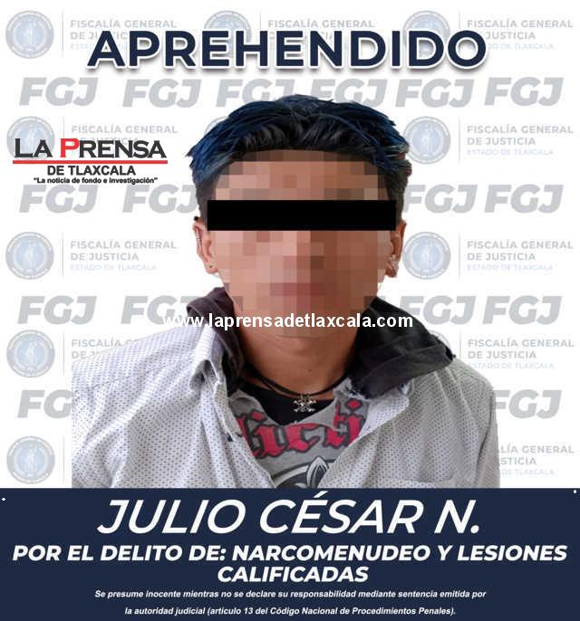 Derivado de una denuncia ciudadana, la Policía de Investigación de la Fiscalía General de Justicia del Estado (FGJE) realizó la detención de Julio César N., por los delitos contra la salud en su modalidad de narcomenudeo y lesiones calificadas.