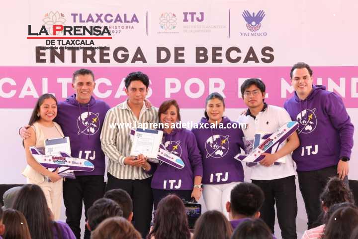 La gobernadora Lorena Cuéllar Cisneros, acompañada de la directora general del Instituto Tlaxcalteca de la Juventud (ITJ), Lucero Morales Tzompa, y del presidente municipal de Tlaxcala, Alfonso Sánchez García, encabezó la entrega de 200 becas a jóvenes del programa de Movilidad Internacional “Tlaxcaltecas por el Mundo” en su tercera edición.