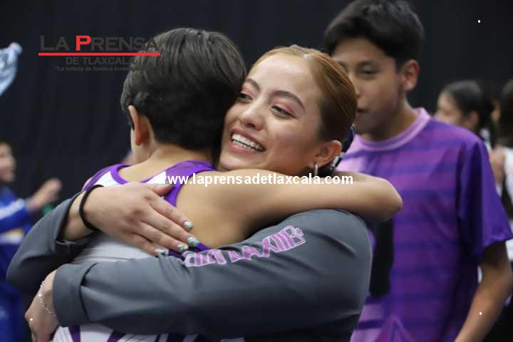 La porra tlaxcalteca animó en todo momento al representativo del estado en las participaciones de Frida Vanessa González Castañeda, Samantha Itzel Carranza Muñoz y Zunami Mancera García, de la categoría 13-14 años, quienes obtuvieron medalla de bronce en equipo, así como al equipo varonil.