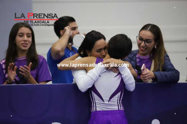 En el Pabellón “A”, las banderas de Tlaxcala ondearon tras la participación de Frida Vanessa González Castañeda al darse a conocer la tabla de posiciones donde ella se ubicó en el tercer sitio de las primeras 8 finalistas de la categoría 13- 14, al sumar más de 80 puntos en las rutinas obligatoria y libre.