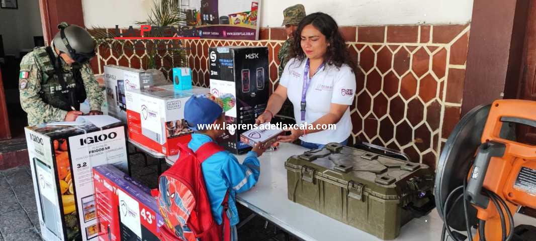 En este año, los beneficios de la campaña “Sí al Desarme, Sí a la Paz” se traducen en la entrega de mil 040 juguetes didácticos, y 60 electrodomésticos, en los módulos ubicados en diversos municipios del estado.