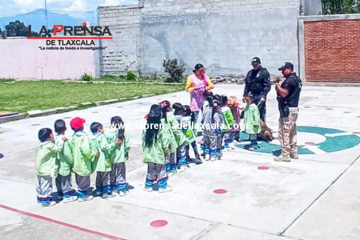 Para fortalecer los lazos de confianza con la niñez, elementos de la Policía Municipal de Huamantla llevaron a cabo una demostración canina en el Jardín de Niños “Octavio Paz”, ubicado en la comunidad de San José Xicoténcatl.