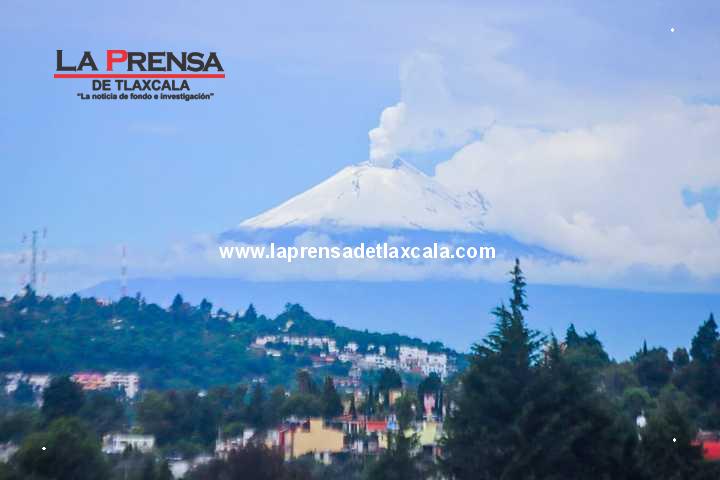 Popocatépetl emite ligera fumarola visible desde la carretera Apizaco-Tlaxcala