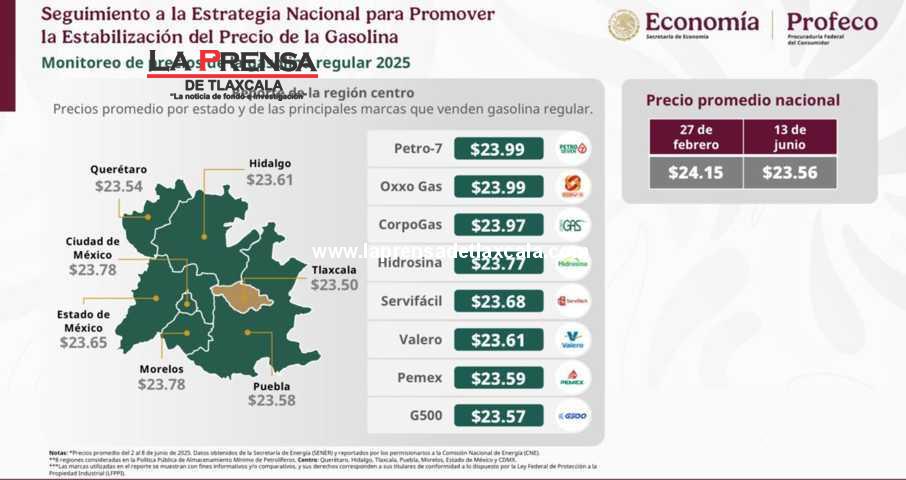 Escalante Ruiz explicó que, de acuerdo con los datos obtenidos por la Secretaría de Energía (Sener) y los reportados por los permisionarios a la Comisión Nacional de Energía (CNE), Tlaxcala se posicionó como una de las entidades con menor precio promedio por litro, mientras que la ciudad de México y Morelos presentan el costo más alto, con 23.78 pesos por litro.