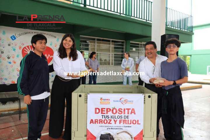 La campaña “Tlaxcala Comparte Hambre Cero 2025” está encabezada por la Secretaría de Bienestar y el Banco de Alimentos, y busca incentivar la participación de todos los sectores de la sociedad para recolectar kilos de frijol y arroz que se integrarán a los paquetes alimentarios que semanalmente se distribuyen a familias con carencia alimentaria.