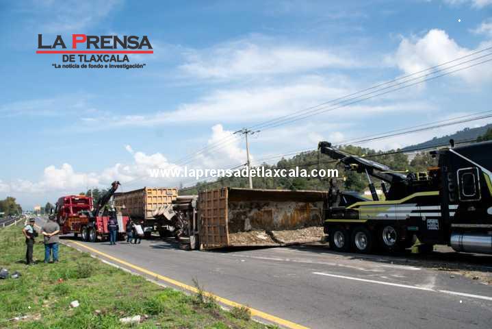 Esta mañana un tráiler volcó una de sus dos tolvas cuando intentó retornar sobre la autopista Tlaxcala-Texmelucan, la altura de la zona militar de Panotla. De este percance no se reportaron personas lesionadas, sin embargo, hasta las 9:40 horas la carretera permanece cerrada.