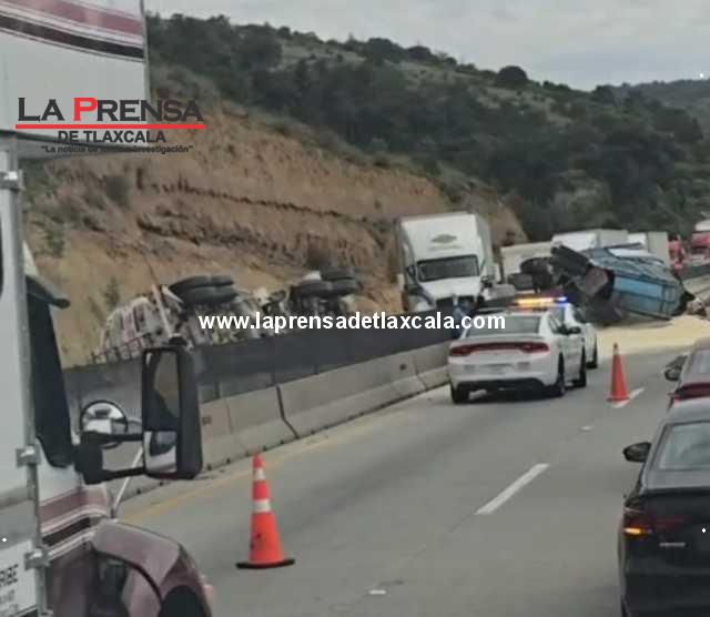 En el kilómetro 211+900 de la vía de comunicación referida en el tramo Sanctorum-Texmelucan a la altura de la comunidad de Pipiyola, por causas desconocidas dos pipas y un camión con jaula colisionaron, quedando una varada en el acotamiento, la segunda recostada sobre uno de sus lados en la cuneta y el tercero volcado sobre los triblocks divisorios con su carga esparcida sobre la superficie de rodamiento; situación atendida por Guardia Nacional (GN) que coadyuvaron en la agilización del intenso tráfico.