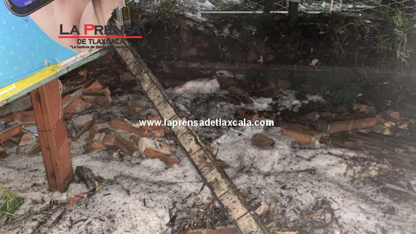 En algunas zonas de la capital tlaxcalteca la acumulación por escurrimientos pluviales desde partes altas, se acumularon en algunas vialidades al grado se superar el nivel de las banquetas y la capacidad del sistema de drenaje, atrapando vehículos y dejando varadas a los transeúntes, en otros puntos geográficos la concentración de hielo género; además de generar ambientes gélidos dignos de postales navideñas, provocaron el colapso de la barda de una institución educativa.